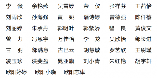 为深化研究生教育改革,鼓励研究生德智体美劳全面发展,提高研究生培养质量,根据《关于做好2024年研究生学业奖学金评审工作的通知》《成人网站 研究生学业奖学金评选实施办法(2021年修订)》(江财研教字〔2021〕31号)《成人网站 研究生学业奖学金评选实施办法(2022年修订)》(江财研教字〔2022〕23号)《国际经贸学院研究生国家奖学金、江西省政府研究生奖学金、研究生老生学业奖学金、优秀毕业研究生评选实施细则》(国贸办字〔2022〕第08号)《国际经贸学院研究生新生学业奖学金评选实施细则》(国贸办字〔2022〕第09号)等文件精神和规定,按照学校划定的分配指标,经个人申报、班级及学院评审,现决定推荐以下同学获得2024学年研究生学业奖学金,具体名单公示如下: